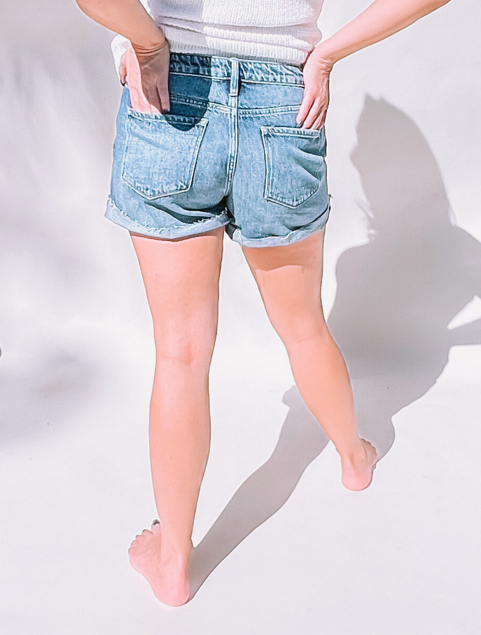 Effortlessly stylish and endlessly versatile, our High Rise Button Fly Single Cuff Denim Shorts are the perfect blend of classic design and modern flair. Featuring a flattering high-rise waist, a trendy button fly closure and single cuff, these denim shorts hug your curves in all the right places while giving you that timeless, laid-back look. The classic denim fabric offers just the right amount of stretch for comfort, making them ideal for all-day wear.