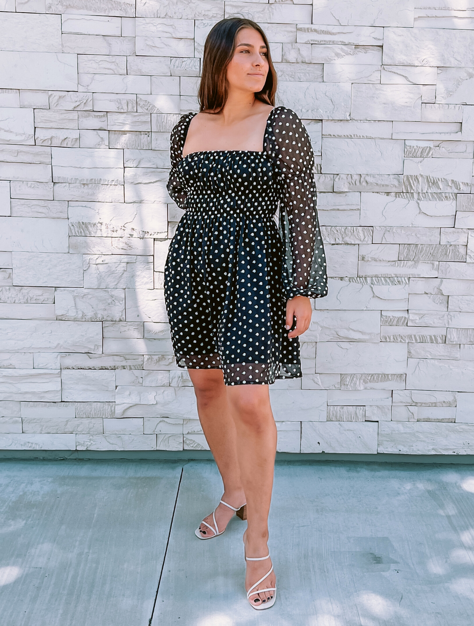 Embrace romance and elegance with this stunning Black and White Embroidered Flower Dress. Intricately adorned with delicate floral embroidery, this dress is designed to turn heads. The sheer puffy sleeves add a touch of whimsical charm, while the classic black and white color palette ensures timeless sophistication.
