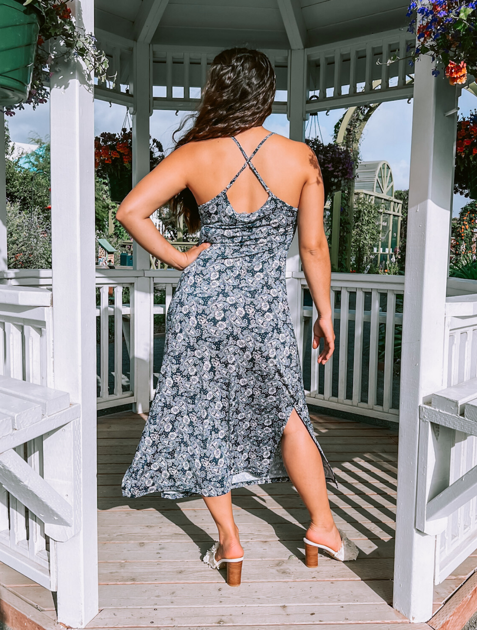 Make a statement in this stunning Indigo Cowl Neck Dress featuring a timeless blue paisley print. With its chic cowl neckline, elegant crisscross adjustable straps at the back and the side slits, this dress is the perfect blend of sophistication and bohemian flair. The intricate paisley pattern adds a touch of vintage-inspired charm, while the deep indigo hue ensures a versatile and flattering look for any occasion.