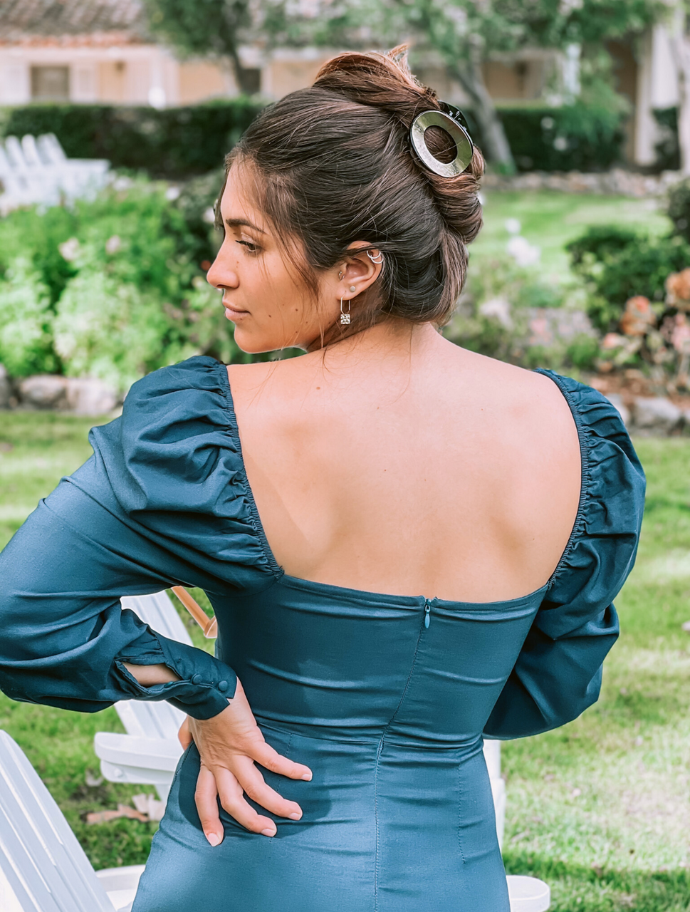 Turn heads with the Dark Teal Front Lace-Up Puffy Long Sleeve Mini Dress, a bold statement piece that blends feminine charm with modern edge. The dramatic puffy long sleeves add a romantic touch, while the lace-up front detailing offers a chic, adjustable fit that accentuates your shape. Crafted in a rich dark teal hue, this mini dress brings a pop of color to your wardrobe, perfect for day-to-night transitions.