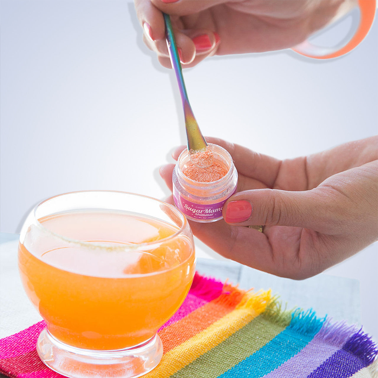 Shimmer spoons come individually. Used for adding and stirring shimmer into your beverage. These spoons have a rainbow finish, adding a little extra fun to your cocktails/mocktails.