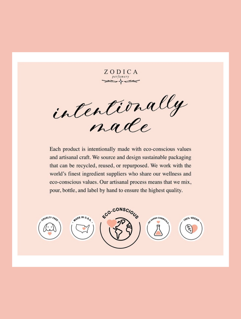Unlock a fragrance experience tailored to your astrological sign with the Zodiac ZODICA Perfumery Mind Body Soul 3-Piece Travel Gift Set. Thoughtfully crafted to align with your unique essence, this set includes a 2ml mini perfume spray, a 1oz hair perfume serum enriched with nourishing argan oil, and a 3oz body veil lotion infused with soothing organic aloe vera. Each set also includes an intention card and a gift tag for a personalized touch, making it an ideal gift for yourself or a loved one. Embrace the cosmic connection and let each scent awaken your mind, body, and soul with your signature star-aligned fragrance.