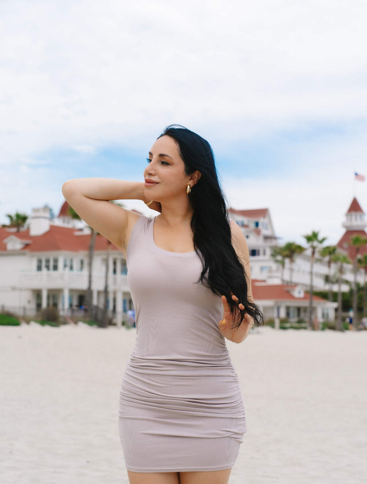 Treat yourself to elevated everyday style with the GOUJĒBĒ The Alyssa Sustainable Bodycon Racer Tank Dress— a must-have silhouette designed to flatter and empower. Made from ultra-soft, high-end ribbed stretch fabric, this knee-length dress hugs your curves in all the right places, while delicate gathering at the waist enhances your natural shape.