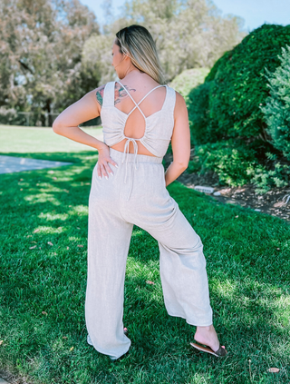 ON SALE- Washed Olive Strapless Cargo Jumpsuit