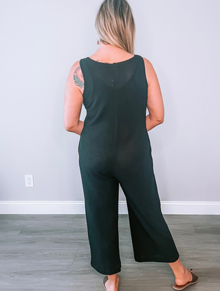 ON SALE- Plus Size Black V-Neck Spaghetti Strap Cropped Jumpsuit