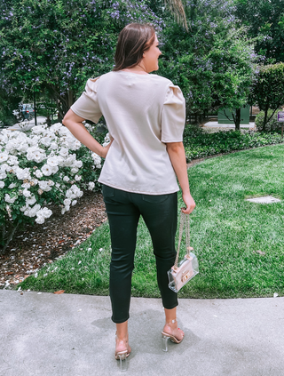 Plus Size Cream Puff Sleeve Crew Neck Tee