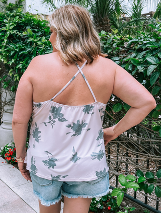 ON SALE- Plus Size Cream & Sage Scoop Neck Criss-Cross Back Floral Top