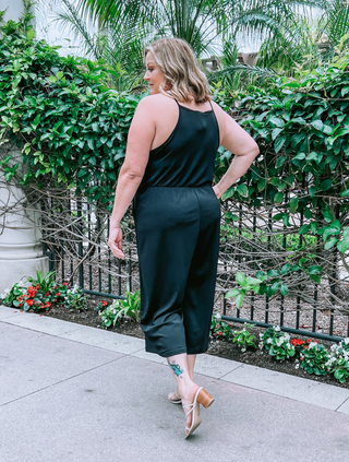 ON SALE- Plus Size Black V-Neck Spaghetti Strap Cropped Jumpsuit