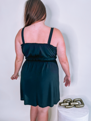 Plus Size Black Sleeveless Ruched Mini Babydoll Dress