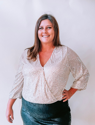 Plus Size Champagne Sequin Long-Sleeve Bodysuit