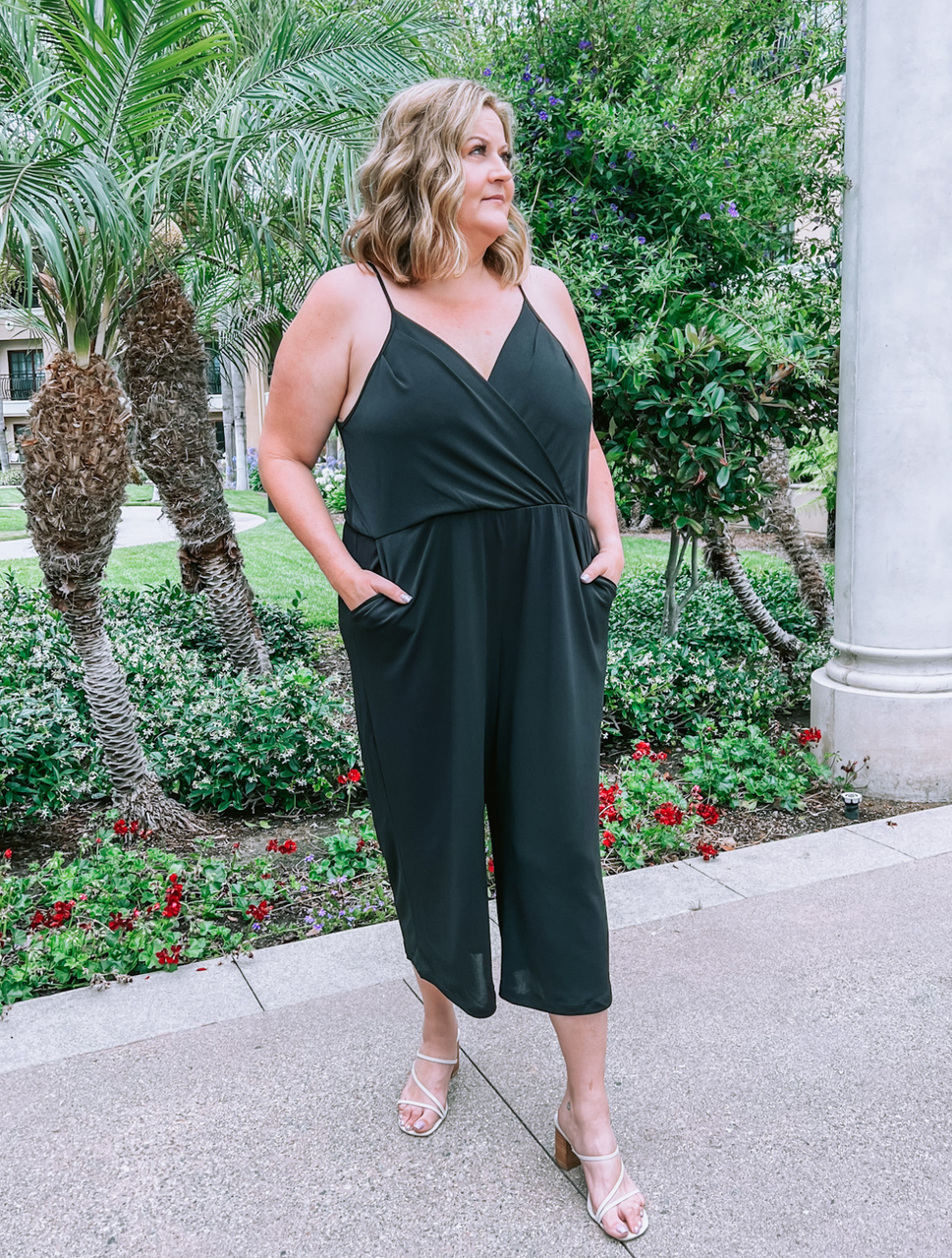 Step into effortless elegance with our Plus Size Black V-Neck Spaghetti Strap Cropped Jumpsuit. Designed to flatter, this chic piece combines comfort with a stylish silhouette, perfect for any occasion.
