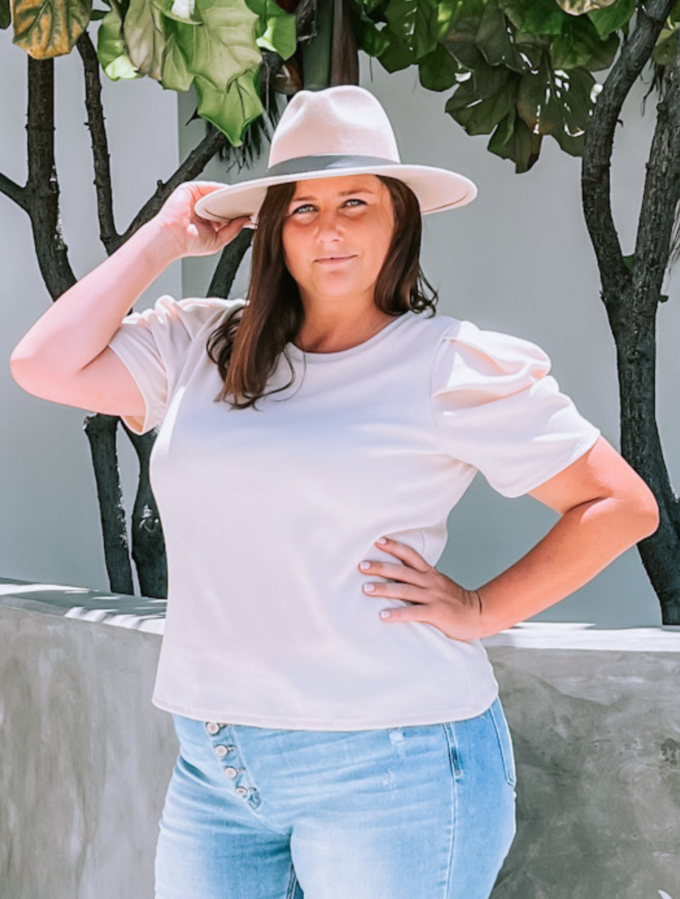 Elevate your everyday essentials with the Plus Size Cream Puff Sleeve Crew Neck Tee. This stylish twist on a classic tee features soft, voluminous puff sleeves that add a touch of femininity to the timeless crew neck silhouette. The creamy hue is versatile and easy to pair, making it a perfect go-to piece for any season.