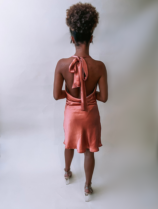 ON SALE- Mauve Satin Halter Neck Flare Mini Dress
