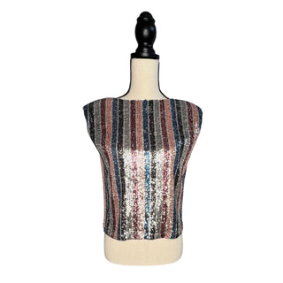 ON SALE- Grey Blush Striped Sequin Shoulder Pad Sleeveless Top