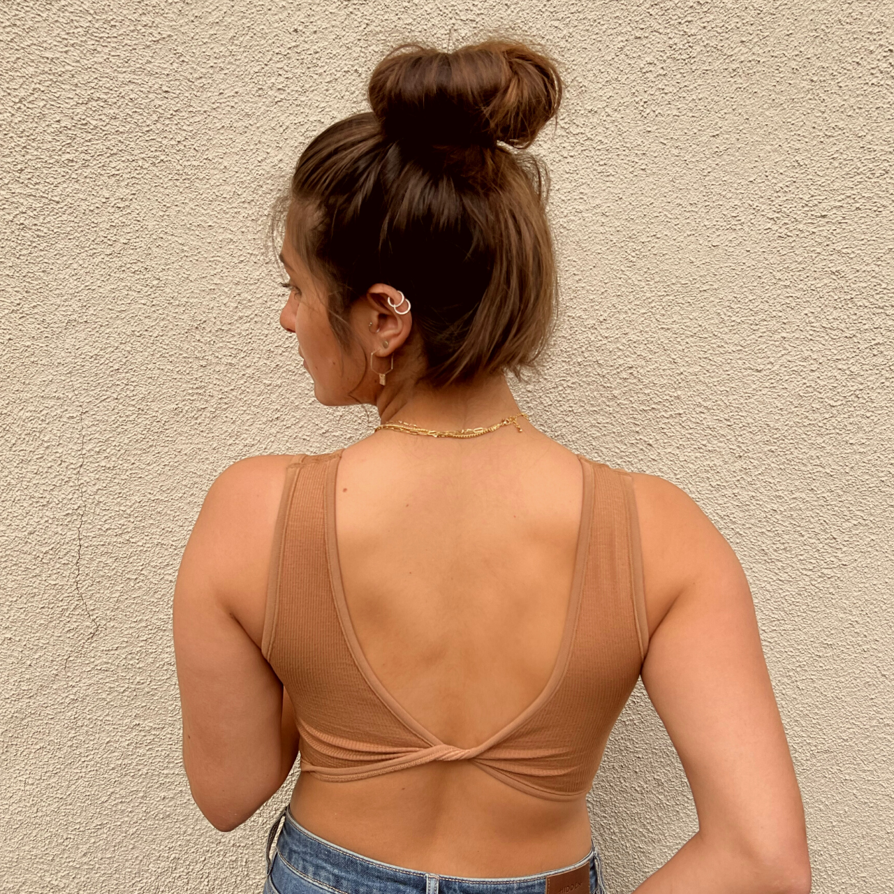 The tank can be worn with the twist in the front or back, giving you the freedom to choose your look for the day. Whether you're heading to brunch, hitting the gym, or enjoying a night out, this tank is the perfect layering piece that complements everything from high-waisted jeans to skirts.