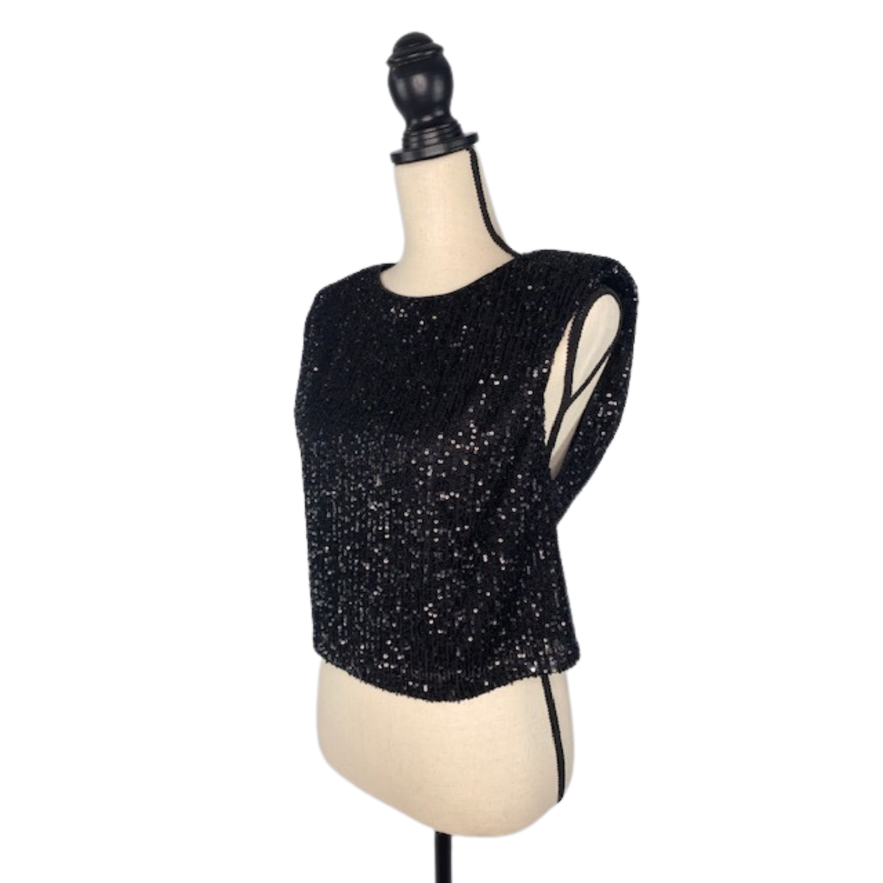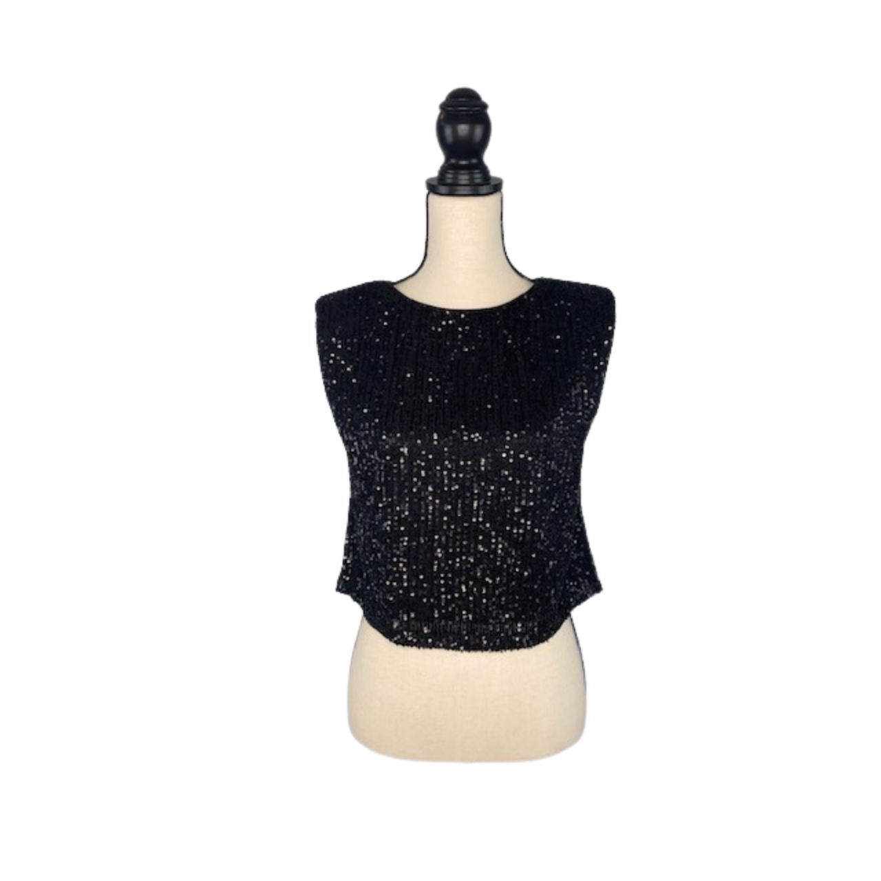 ON SALE- Black Sequin Shoulder Pad Sleeveless Top