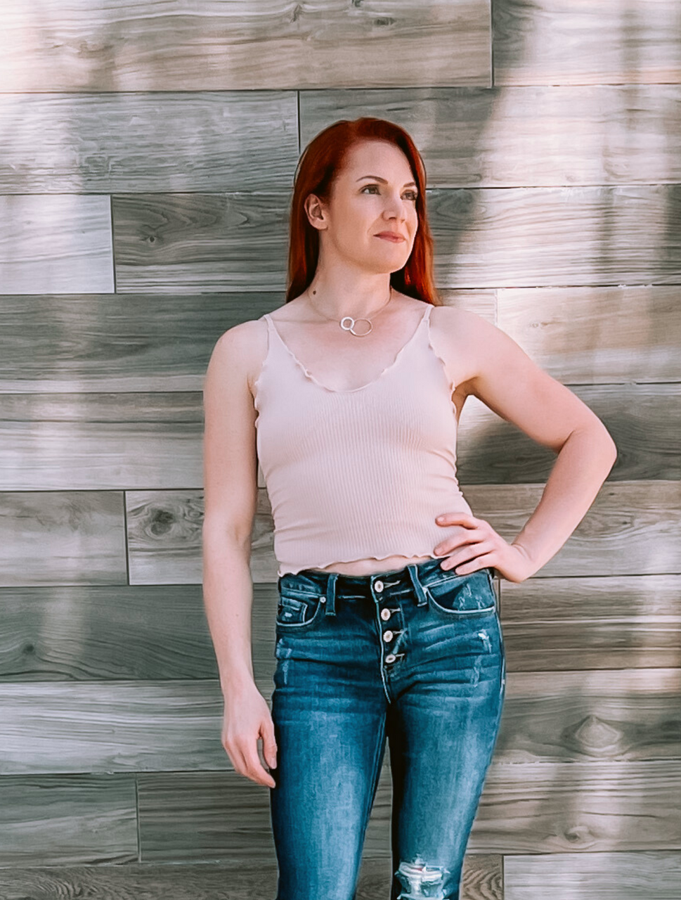 Add a touch of feminine charm to your wardrobe with our Shadow Rose Ruffled Edge Tank. This delicate top features soft ruffled edges that frame the neckline and hem, creating a romantic, flirty vibe. The elegant shadow rose hue adds a subtle pop of color, while the adjustable straps ensure a perfect fit for any occasion.