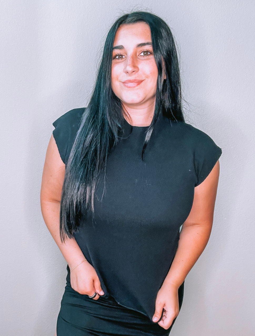 The mock neckline offers a polished finish, while the sleeveless cut ensures versatility and comfort. Pair this top with everything from high-waisted jeans to tailored skirts for a look that effortlessly transitions from day to night.