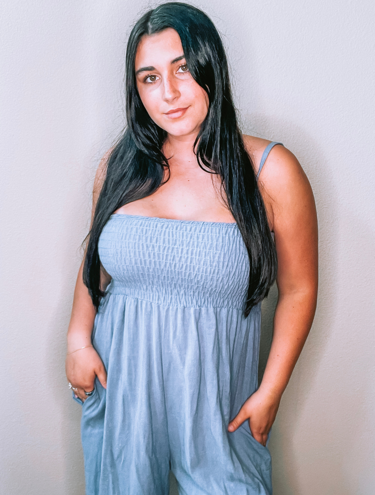 Breeze through your day in style with the effortlessly chic Denim Blue Smocked Linen Wide Leg Jumpsuit. This jumpsuit features a flattering smocked bodice that hugs your figure, balanced by wide-leg pants for a flowy, relaxed fit. Made from breathable linen, it’s perfect for warm-weather days or casual outings, offering both comfort and style.
