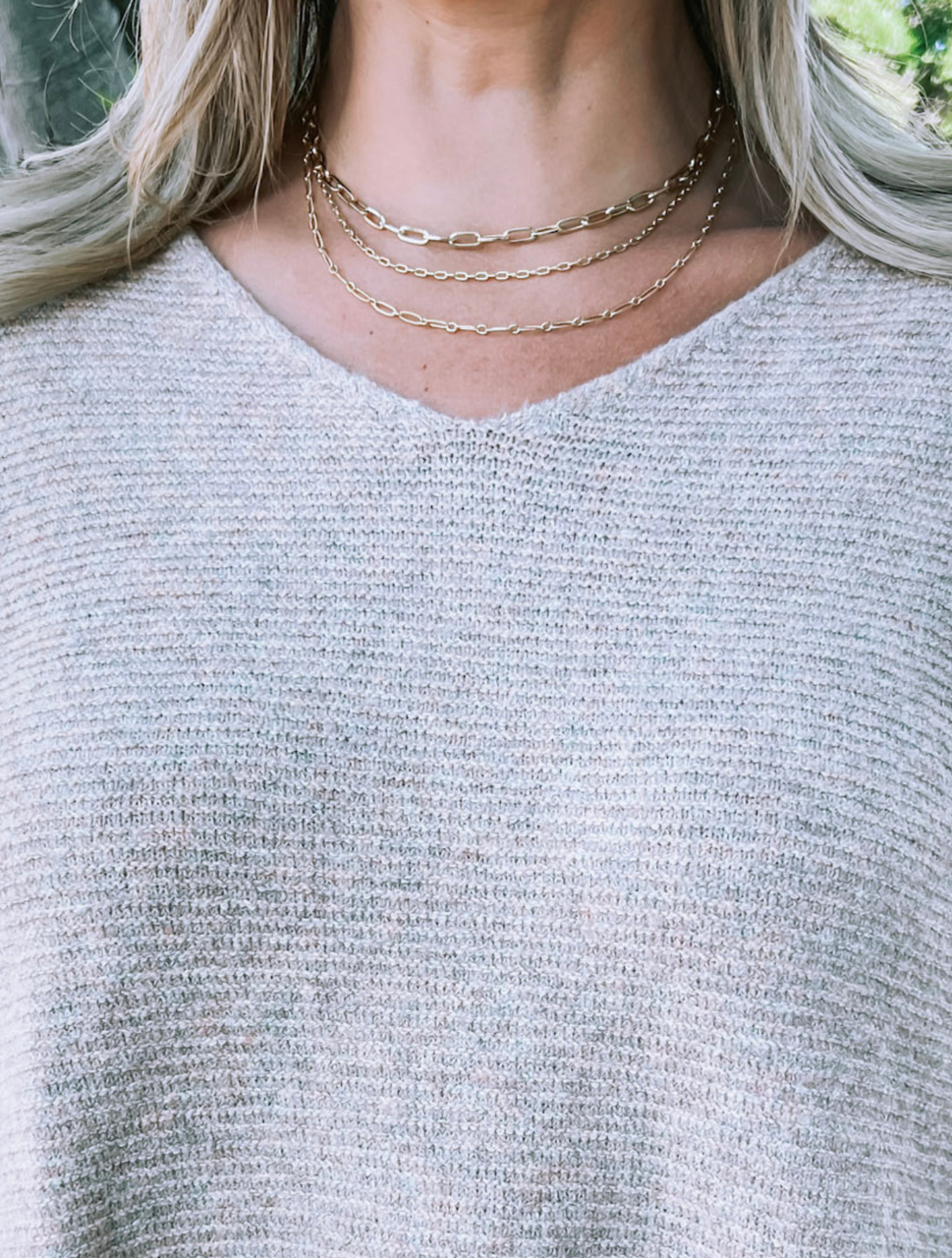 Make a bold yet elegant statement with our Gold Triple Layered Cable Necklace. Featuring three delicately intertwined cable chains of varying lengths, this necklace adds dimension and sophistication to any outfit.