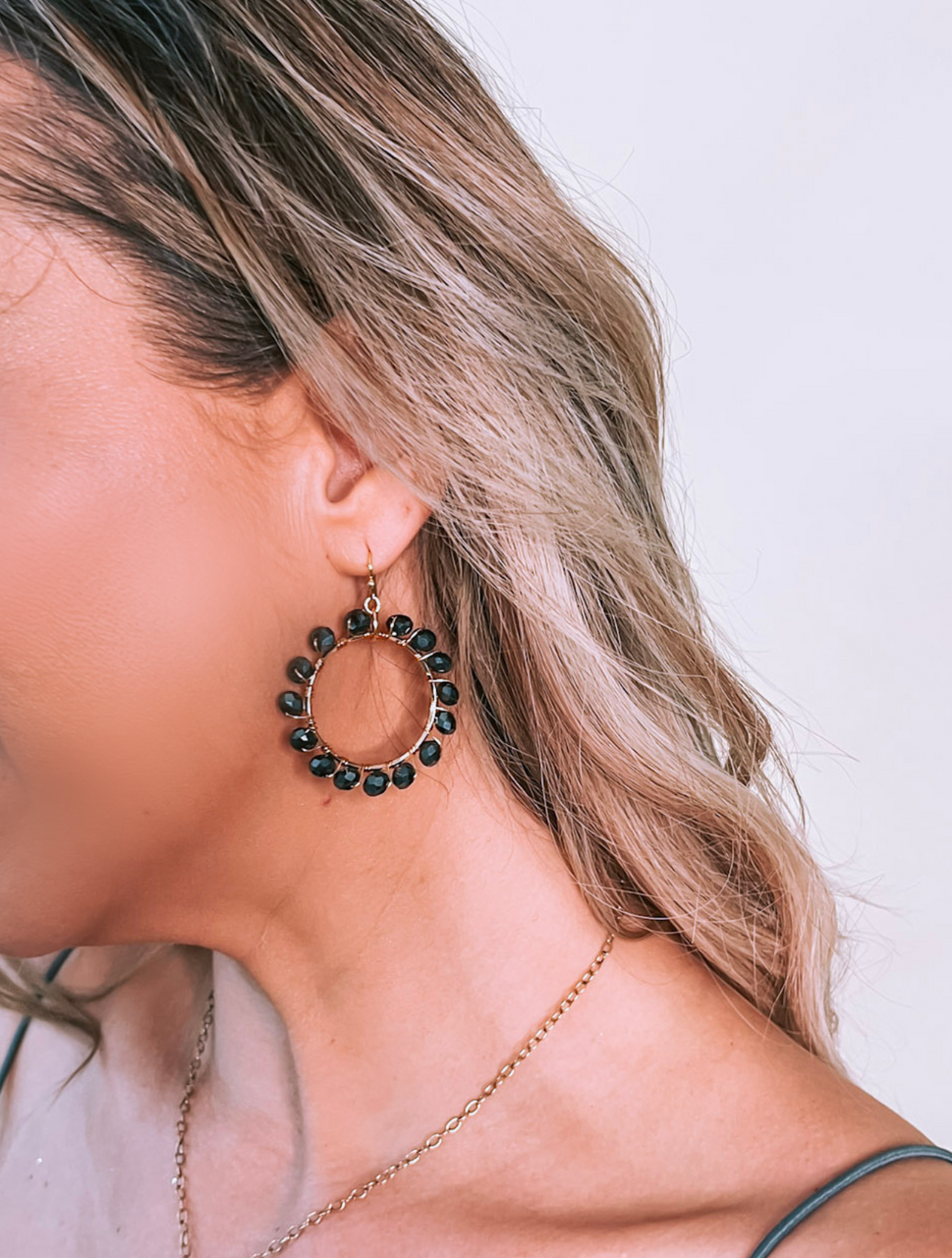 Add a touch of shimmer to any look with the Hadley Rhinestone Earrings — the perfect accessory to elevate your style. Featuring faceted crystals that catch the light beautifully, each stone is delicately wire-wrapped onto a slender ring, creating a refined yet eye-catching design. With a flattering 2" length, these earrings add just the right amount of sparkle for both everyday wear and special occasions.