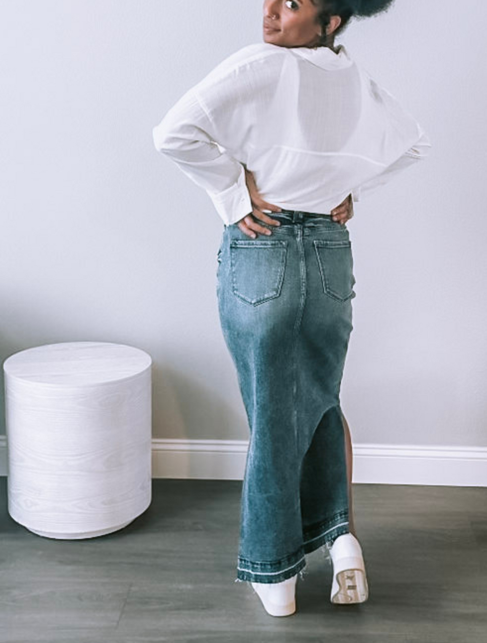 Embrace effortless style with our Medium Wash with Side Slit Maxi Jean Skirt. This stunning skirt combines the timeless appeal of denim with a contemporary twist, featuring a flattering medium wash that complements any outfit. The long, flowing silhouette exudes femininity, while the side slit adds a touch of modern flair and makes it easy to move.