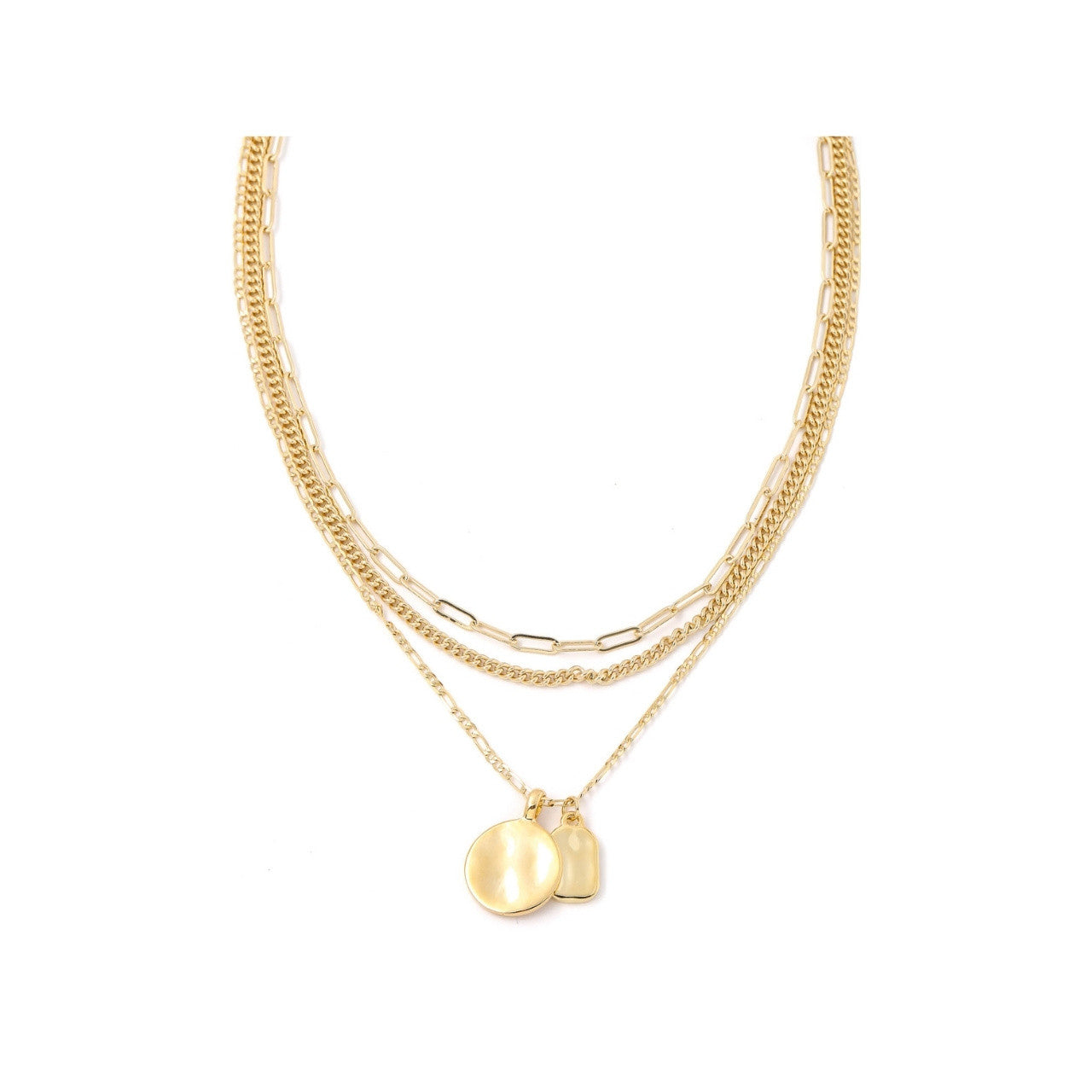 ON SALE-Gold Cable Triple Chain with Coin Charm Necklace