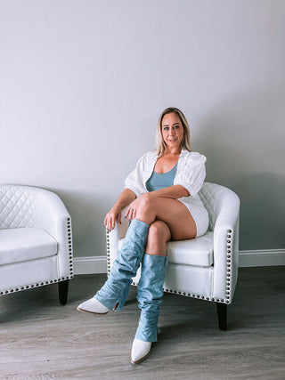 ON SALE- Blair Off White Tweed Squared Heel Ankle Boot